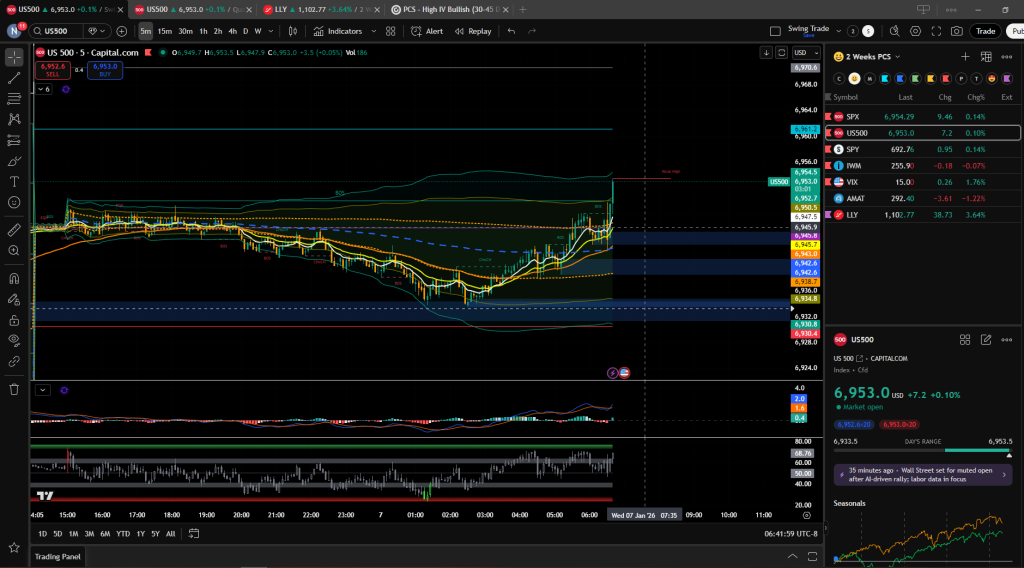 So based on the delta today, it seems like upside potential is the possibility so i opened a put credit spread position on 6915/6910 for $0.50 near a bit above VWAP at the open. It was a bit risky but from the data and plus the 9/20 emas lining up, it seemed that upside would hit first on the short term. I’m planning on closing everything at $0.10 If it can reach it in the first hour or two.