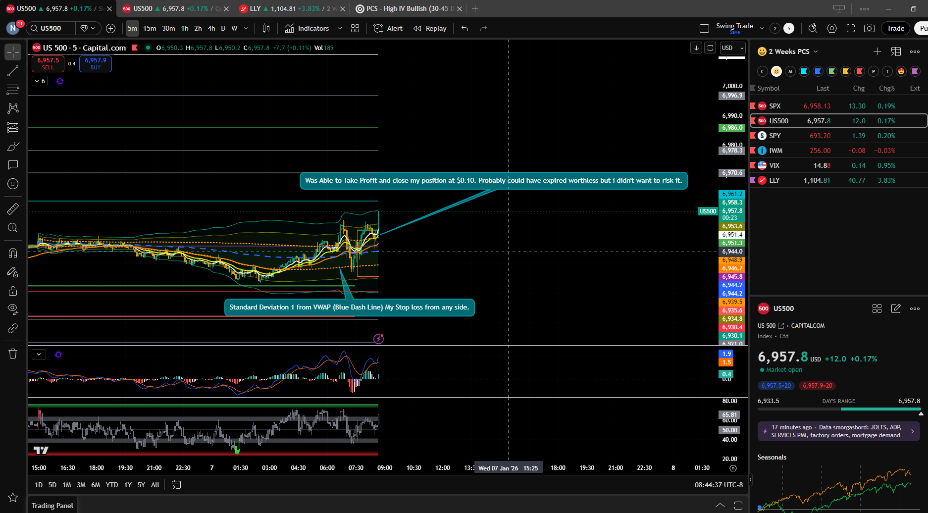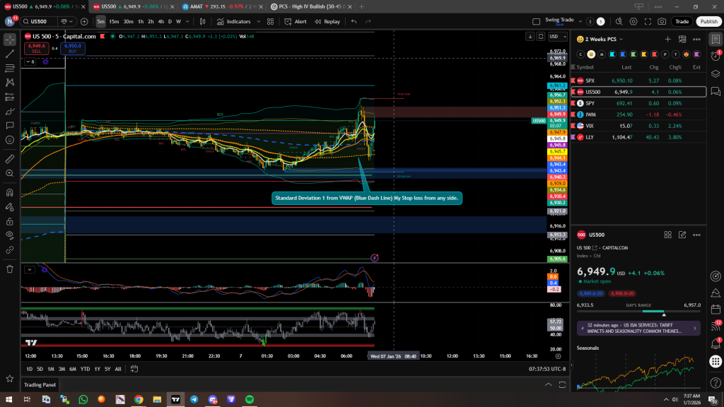 Update: Markets went down but stopped at the Standard Deviation 1 from the VWAP. I would have opened a call credit spread if it continued down further. But good thing it climbed back up. My AMAT Put Credit Spread Also finally closed at $0.20 which is a good 80% profit. I plan to hold for another hour if it just sits around this area. However if it closes below the Standard Deviation I might close for a loss today or breakeven.