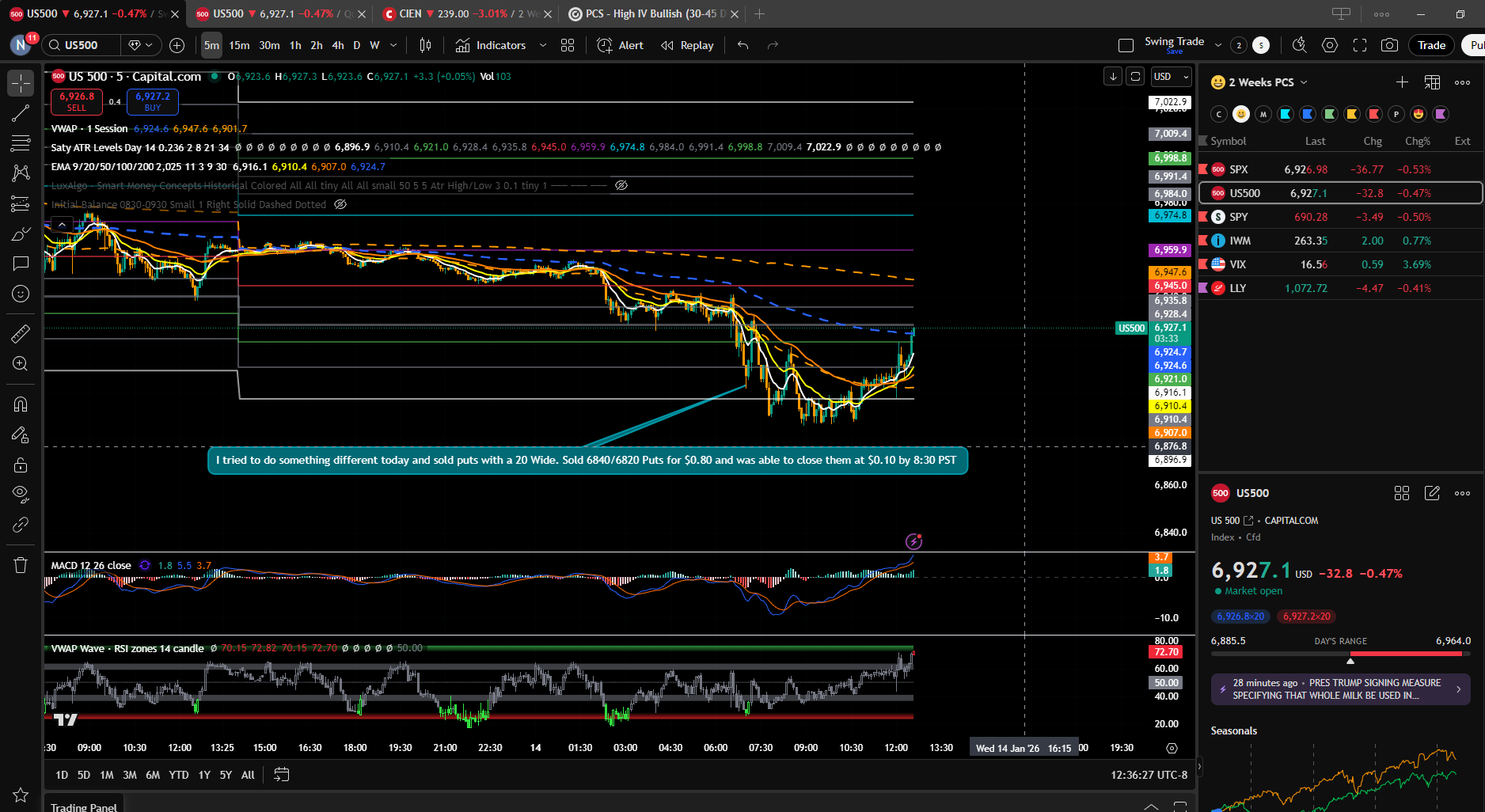 Today was a test day. I wanted to sell one standard deviation(SD) from the opening price. The 1SD was 6830 so I sold 6840/6820 for $0.80. Had a stop loss for double that amount. This trade worked out really well so I might do this more often if I see the opportunity to sell around the 1SD area for some nice premium. I noticed that although you got less premium. Theta decayed much faster and fast price spikes did not inflate premium that much and I was able to be a bit more patient. Obviously this setup is very risky if you are going against the trend, but if you targeting the SD strikes you should relatively be safe.