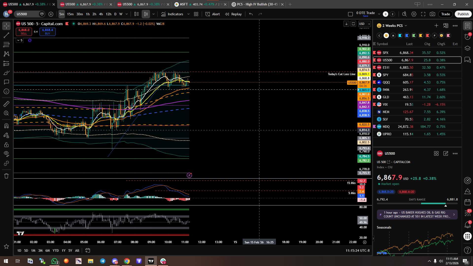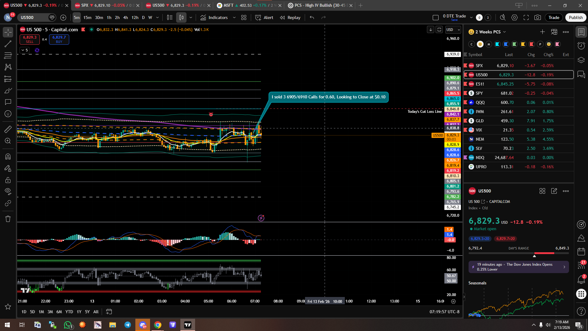 I Sold 3 6905/6910 Calls for $0.60. Currently the premium is still the same. Price today has been really volatile, going up and down 20 points the span of ten seconds. I set a stop loss on the bullish ATR Level marked on my picture which is the Teal horizontal line. Looking to close for $0.10. Quantdata suggests downside and even if its wrong, I set a close position at the Bullish ATR Level (horizontal line) so the more time it takes to go up the more profit I can take with time decay. Will update again once I close positions.