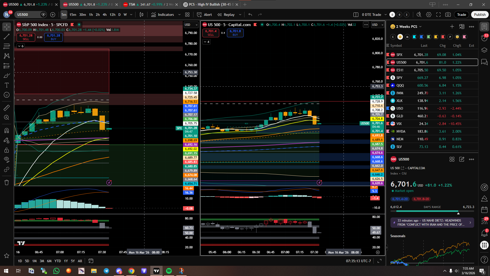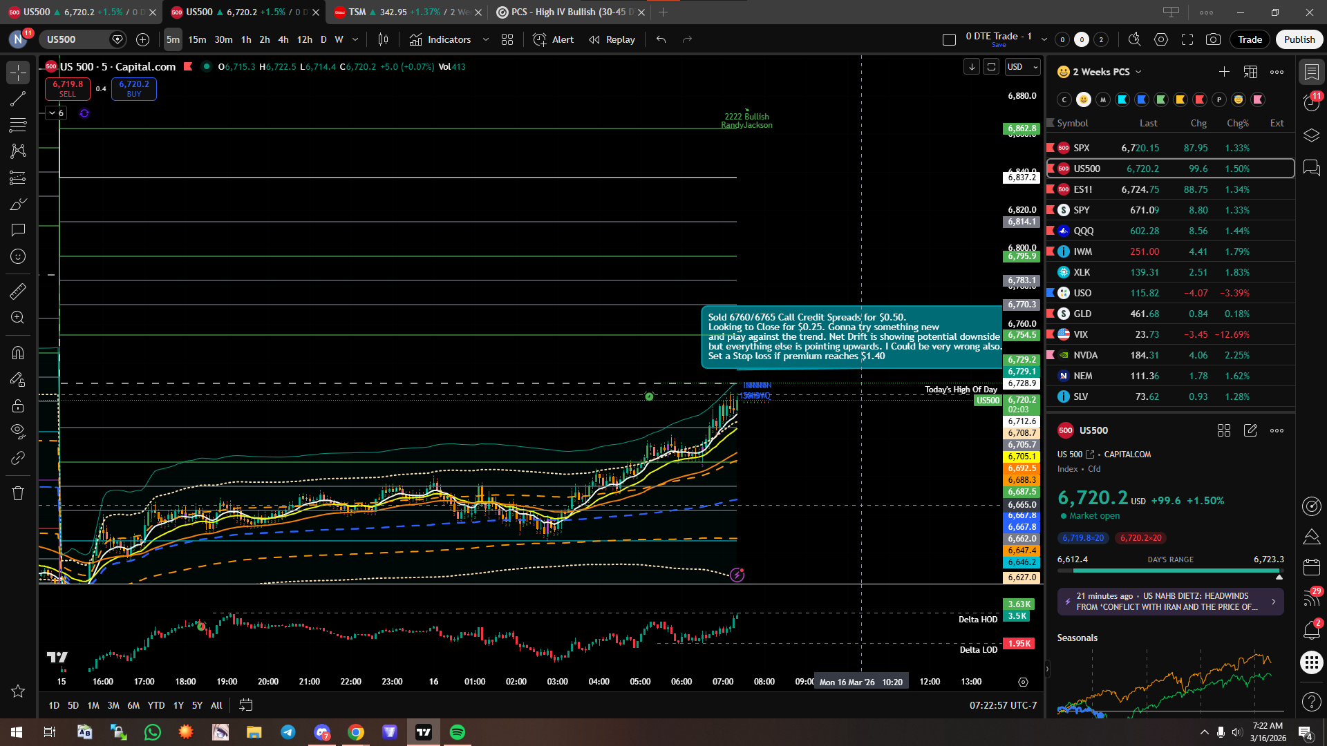 Based on the Data, I should have sold puts, however net drift was showing that alot puts were being bought. I opened a call credit spread at 6760/6765 for $0.50 and $0.60. I’ll look to close for 50% or more depending on the situation as im betting basically on a reversal based on the data.