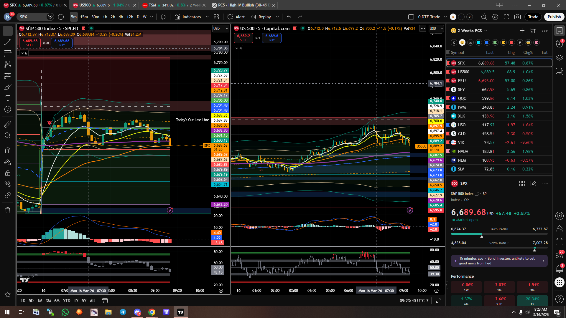 Update: As I was writing the beginning of the post, price did reverse down. It went below VWAP on the SPX Chart. I’m now looking to close everything at $0.10 unless price goes back and closes above the upper SD1 level on SPX Chart (Orange Dotted Line 6716.53). If it goes back up there, I’ll look to close for 50% but if it stays below there it will be $0.10
