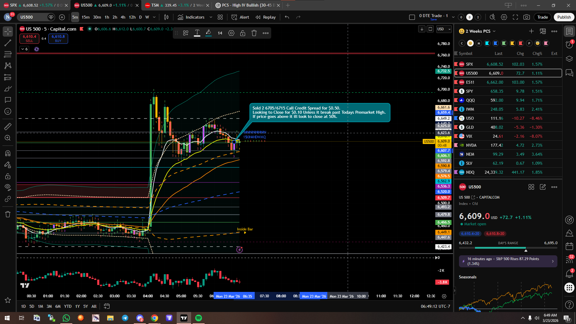 Due to a Trump tweet in the premarket about not hitting any major Iran energy infrastructure, Price jumped up. I sold 6705/6715 call credit spreads for $0.50. Looking to close my positions at $0.10 or lower unless price goes past 6650. If it does then I’ll look to close at 50%.