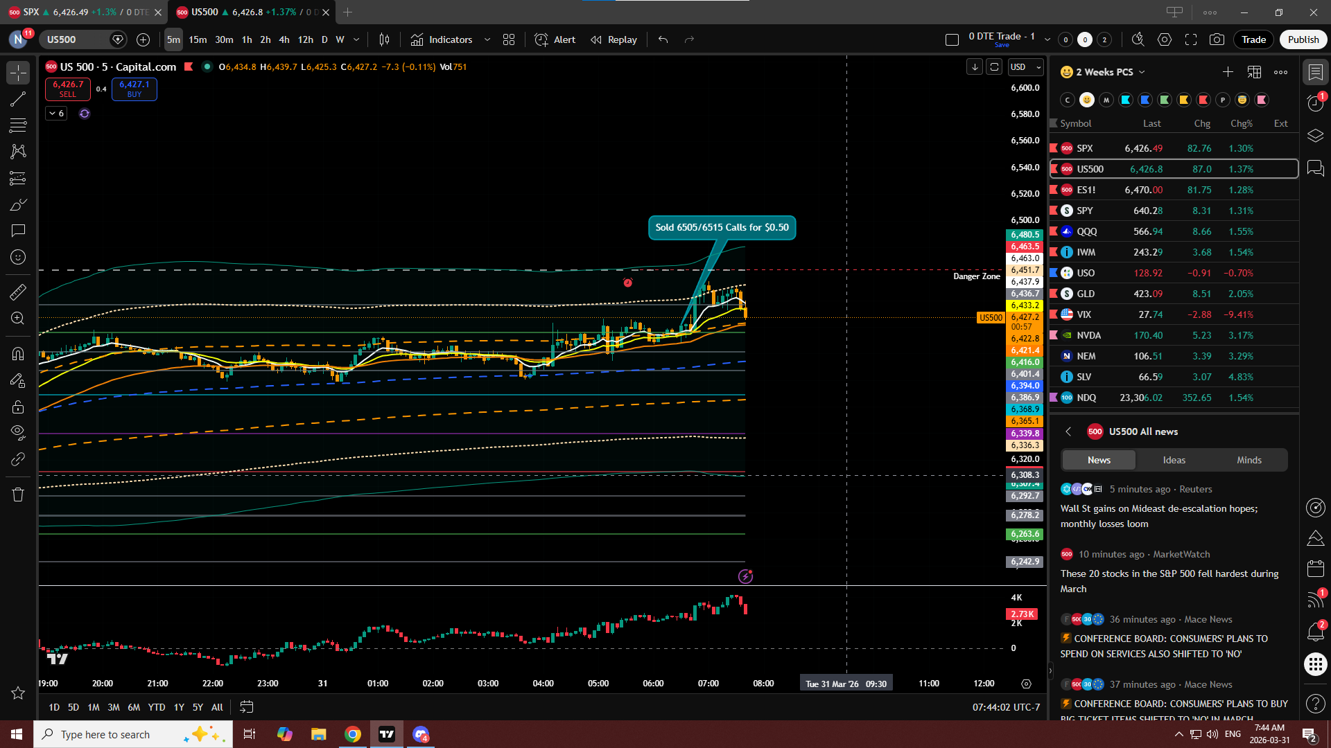Based on the deltas, We had short term bullishness, however we had pushed up so far during premarket, I didn’t think we would push past that far any more. I chose strikes way past the 6475 MVC. I sold 3 call credit spreads 6505/6515 for $0.50. Looking to close these at $0.05 or $0.10 depending on where price is at 9 AM PST.