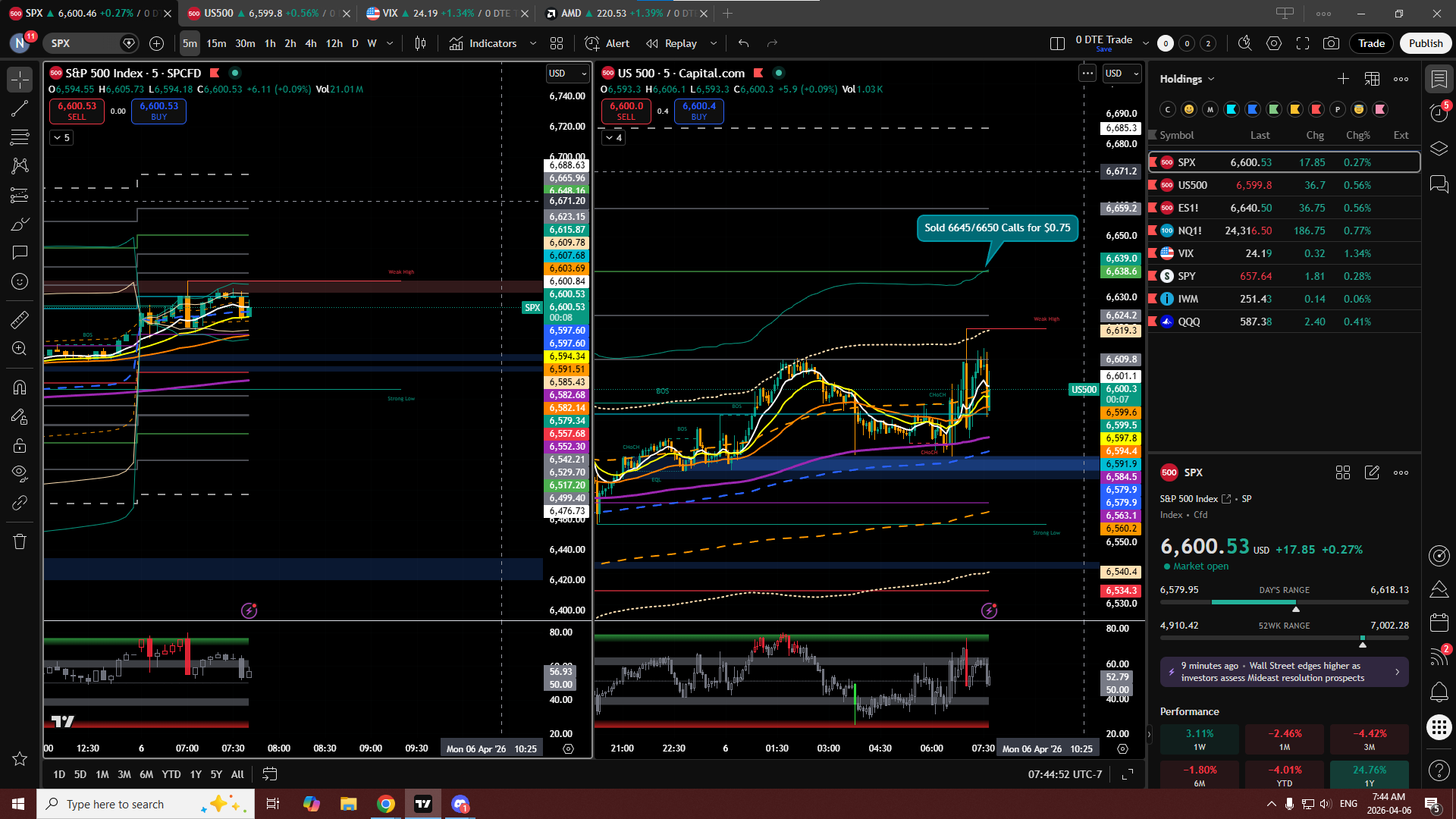 Today’s deltas were all very positive, however positive gamma mvc was only a few points away. Since it was such a high gamma level I had a theory that it wouldn’t go past 20 points from MVC. I set a stop loss for 6620. I sold call credit spreads for $0.75 each for strikes 6645/6650 Calls. Looking to close these for $0.05 if price goes below VWAP. If it stays and howevers, ill look to close at 50% in the next hour. If price hits my cut loss ill close all my positions except one. I definitely shouldn’t be doing this as i’m going against the current trend however the data points that we wont go any higher at the moment.