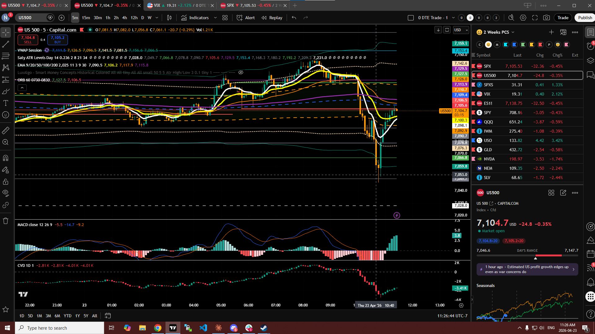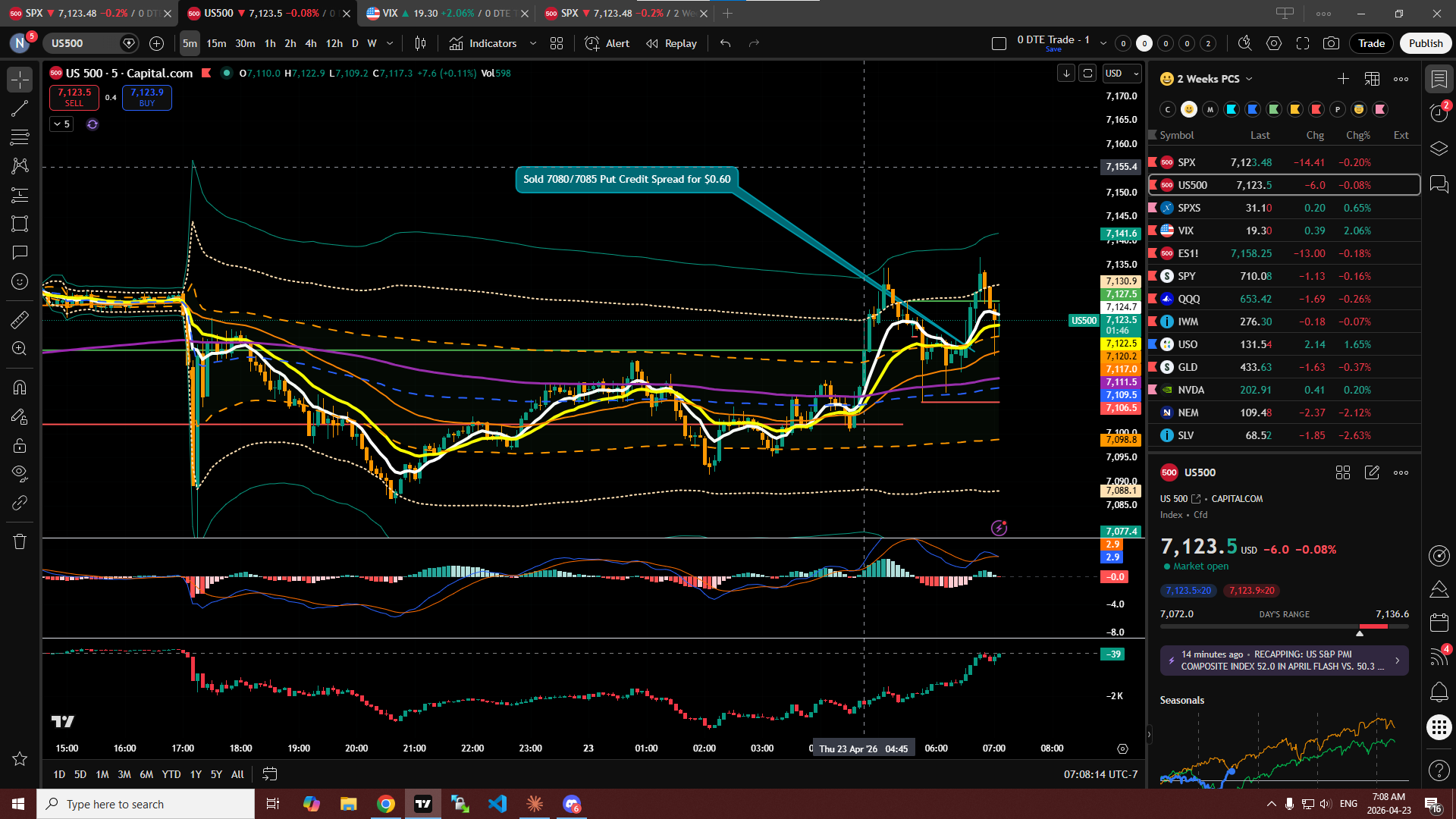 So Based on our rules, We are aiming for price to stay above VWAP for majority of the day. Price broke Premarket High right around 6:40 AM PST. I got in one trade for a put credit spread at 7080/7085 for $0.50 and when it came down to 7120 I sold another for $0.75. My stop loss is a close below the Vwap and premarket low.